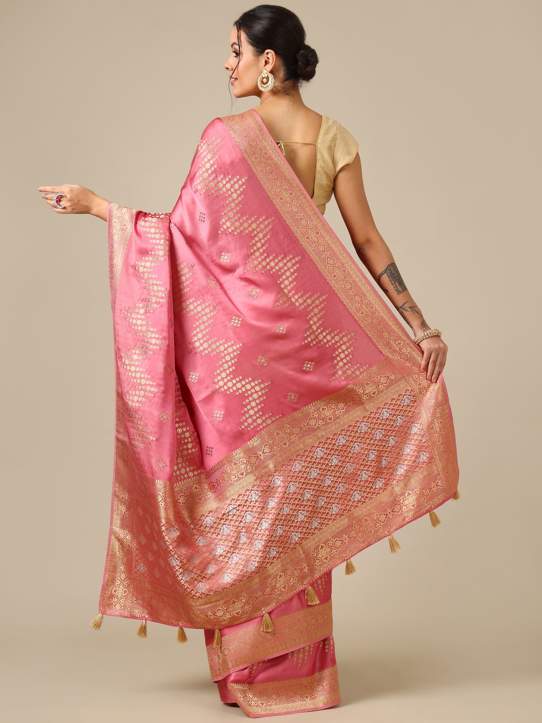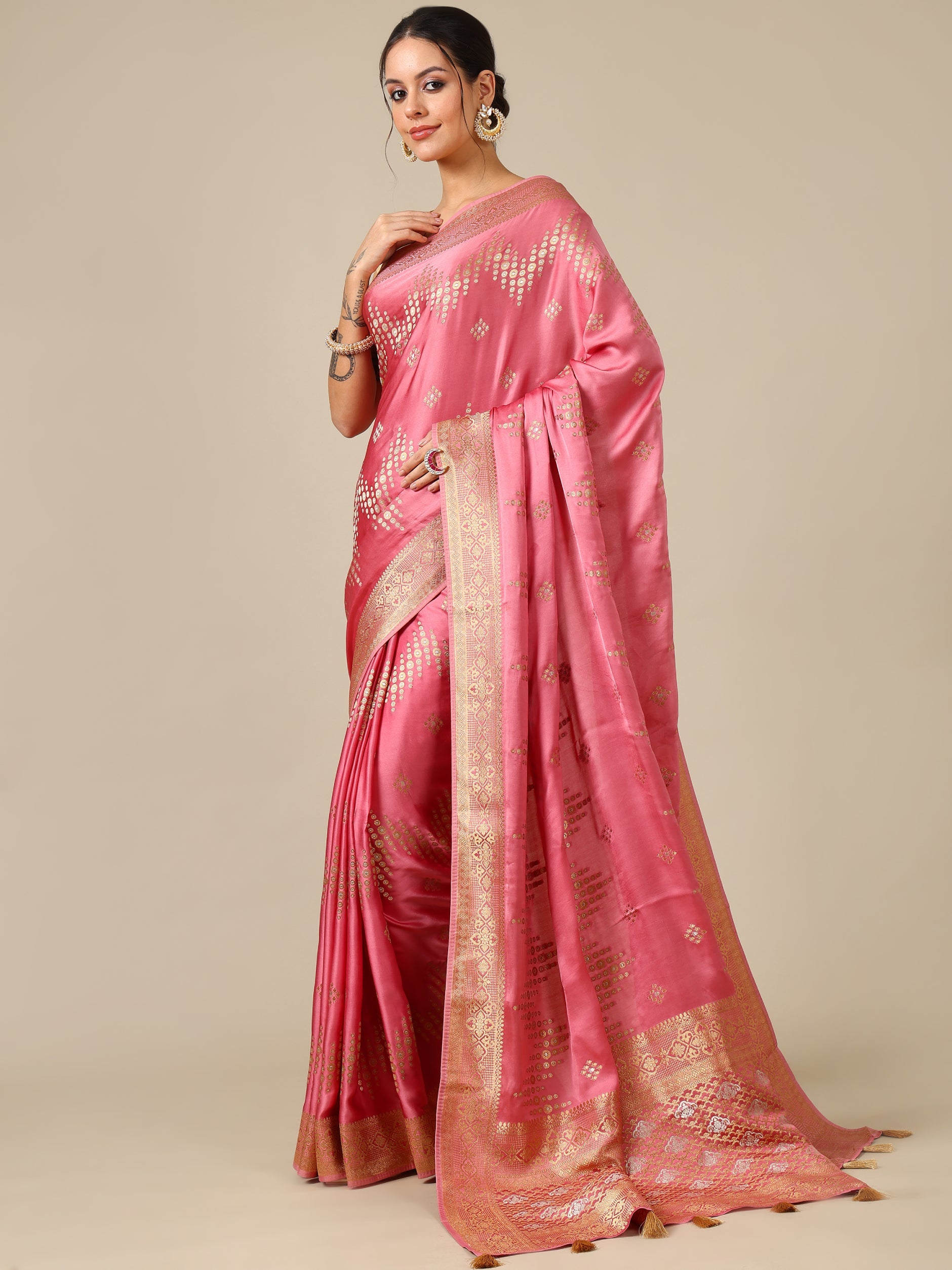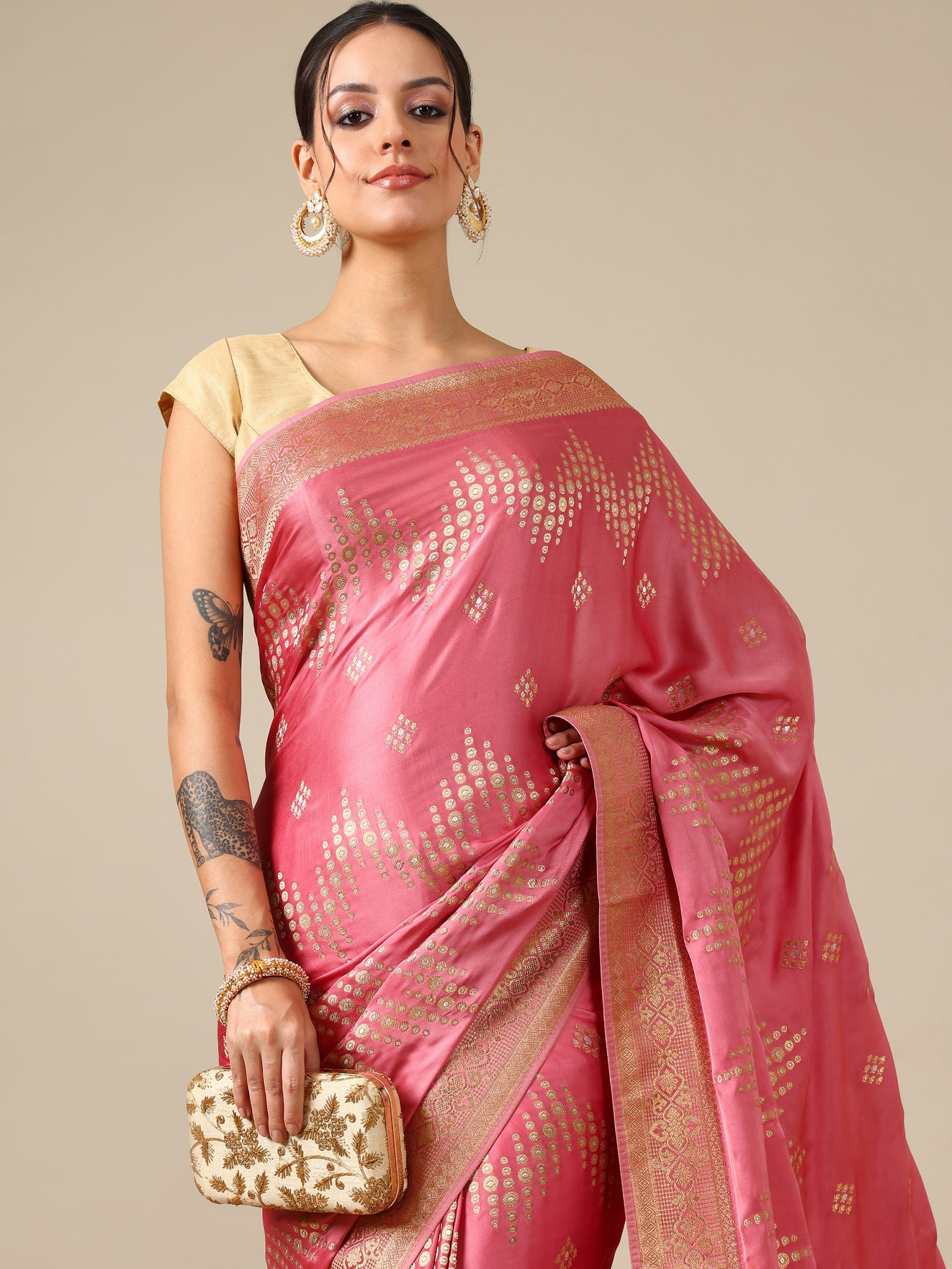 Gazicrape sarees are celebrated for their lightweight texture and rich, detailed embroidery. They often feature hand Zardosi work and intricate Buti patterns, making them a perfect blend of comfort and elegance.