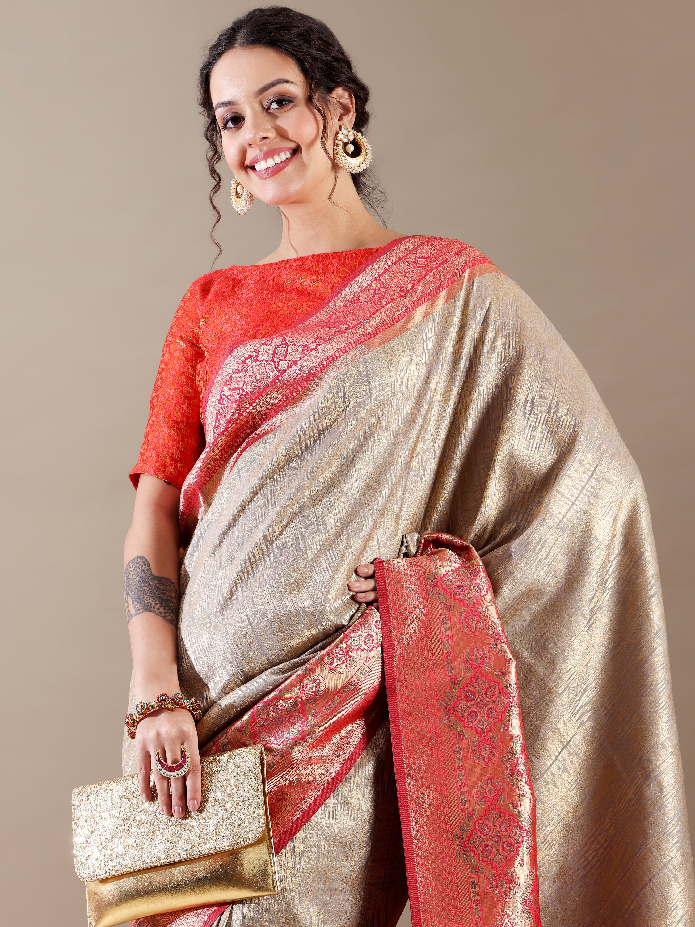 Our new collection features a stunning range of Silk and designer party wear sarees, including Pure Kanjivaram, Banarsi Katan Silk, Gazicrape, Organza, and Butterfly-Net sarees with intricate Zari, Zardosi, and Sequin work.