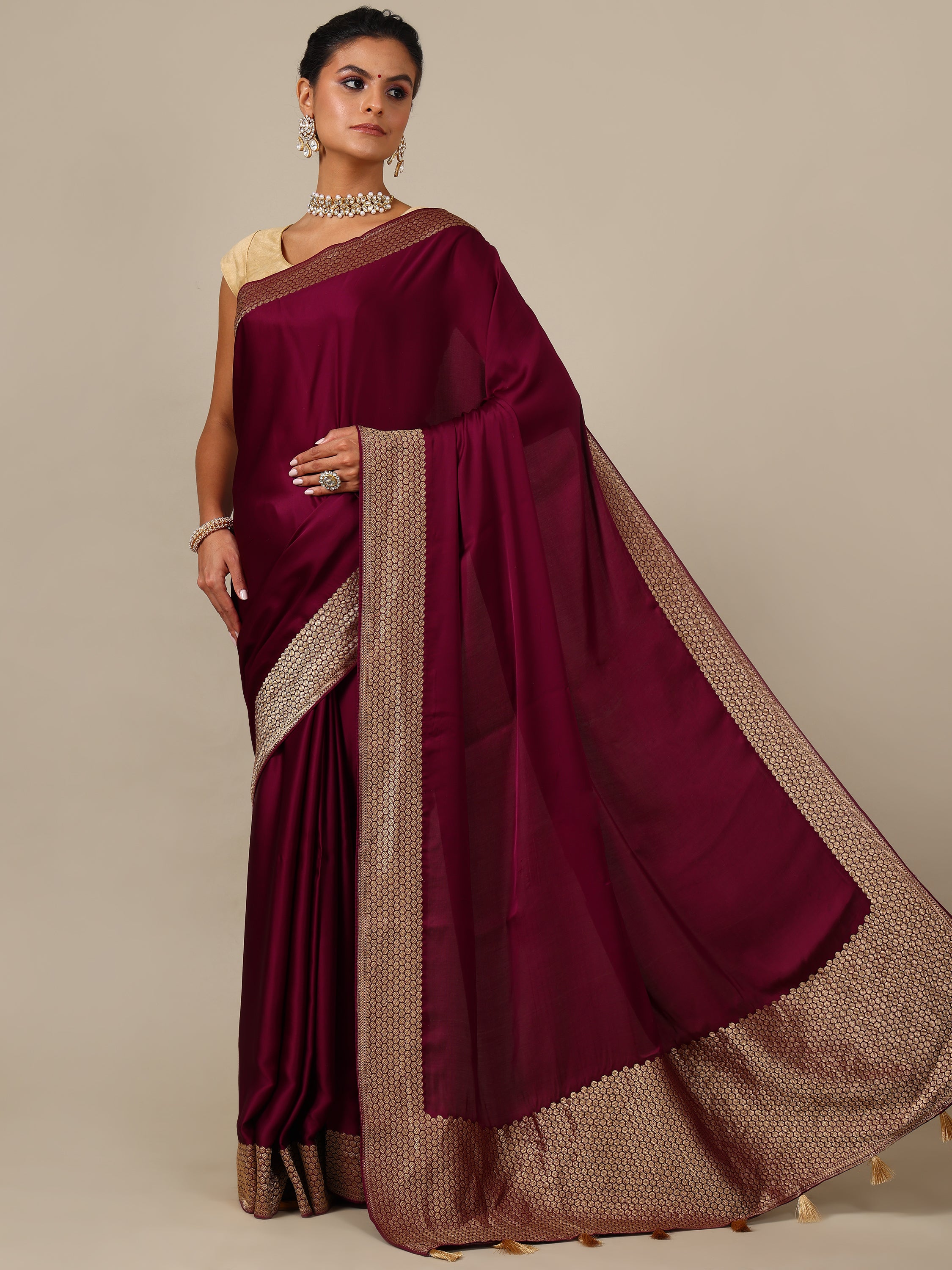 Gazicrape sarees are celebrated for their lightweight texture and rich, detailed embroidery. They often feature hand Zardosi work and intricate Buti patterns, making them a perfect blend of comfort and elegance.