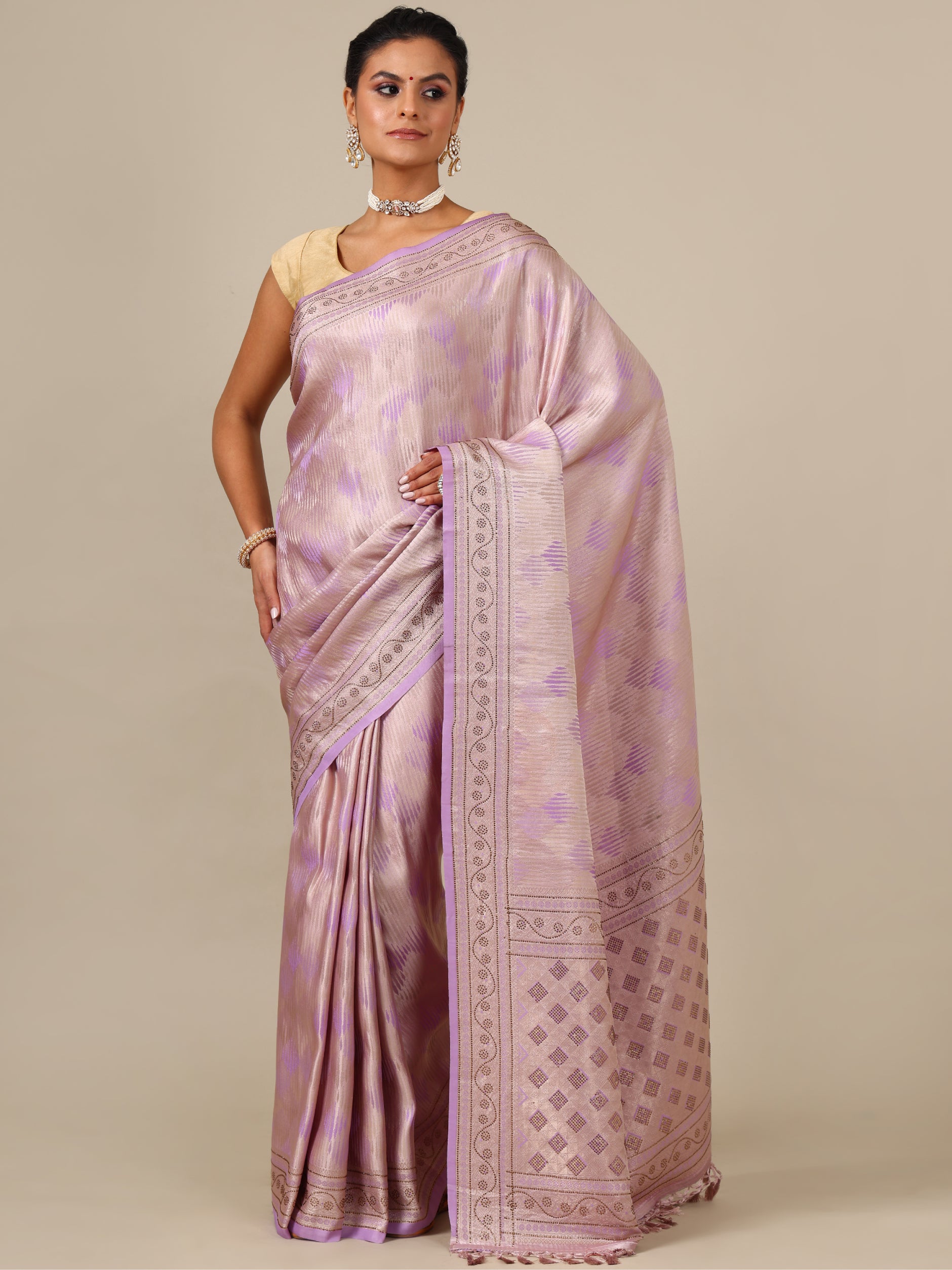 Tissue Kanjivaram sarees are unique due to their delicate tissue-like texture combined with the grandeur of Kanjivaram silk. They often feature exquisite Meenakari and Zari weaving, offering a perfect blend of traditional elegance and contemporary style.